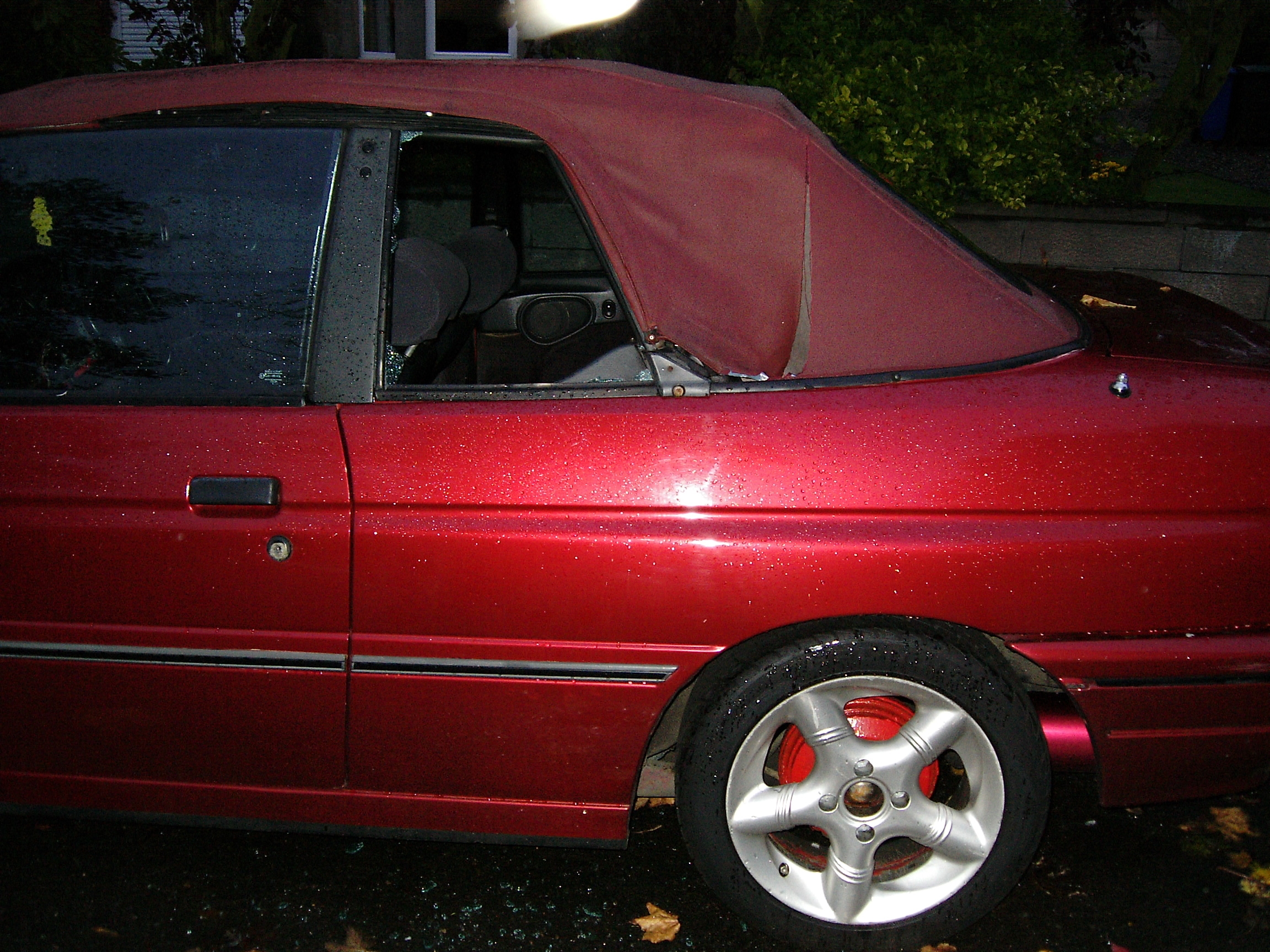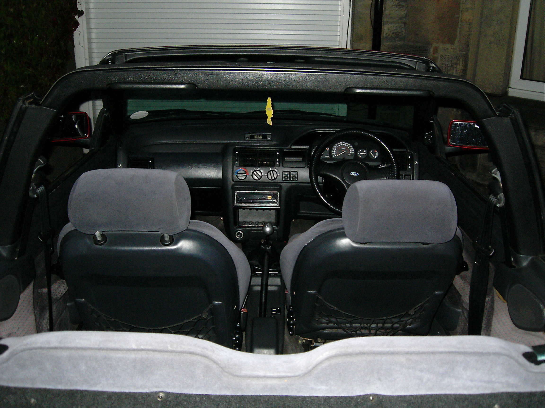 Facts1991 (J reg) Ford Escort 1.6 Ghia Cabriolet. This car was bought with money received for my 21st Birthday, in August 2004. It had a lot of goodies including; power hood, electric windows, electric mirrors, power steering, Pipercross induction kit, Piper cam, lowered suspension, strut brace and an adonised exhaust loud enough to wake the neighbours! However it was all too good to be true as in October 2004 the car was broken into. The thief decided to slash the roof to try and gain entry to the car, obviously this didn't work so a window was smashed instead. The stereo was stolen and the thief tried to "hot-wire" the car but was disturbed. The insurance company declared the car a total-loss since they would have had to replace the roof, ignition barrel, locks etc in order to repair the car. So the dream of owning a convertible was short lived to say the least! Everything has now turned out for the best as I was able to use the insurance payout to put towards purchasing an excellent example of a Series 2 Escort RS Turbo.