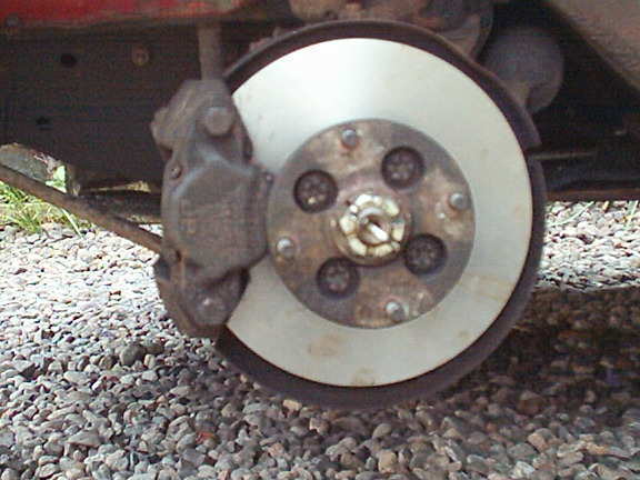 One of the first jobs was to change the brake discs and pads; as shown below. In addition the following parts were replaced during the initial ownership of the car: Door Mirrors, Sills, Brake Pipes, Gearbox Seal, Driveshaft Seals, Distributor Cap, Rotor Arm, Spark Plugs, Ignition Leads, Battery and Battery Terminals and the Alternator.